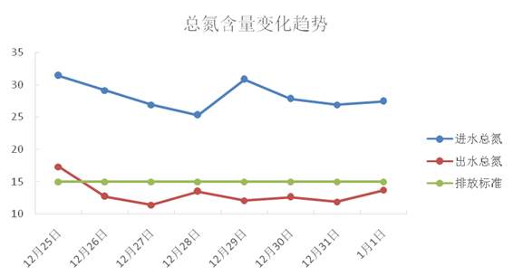 在生化系統缺氧池加入復合碳源101產品與菌種后,出水總氮持續下降,最終在不增加噸水處理費用的基礎上,實現了出水穩定達標排放。