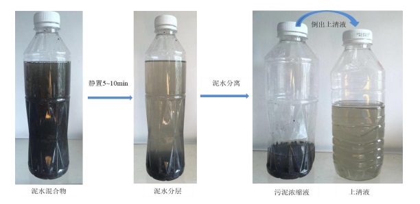 ③另取一個干凈的塑料瓶,將泥水分離得到的上清液倒入新瓶中,同時得到一定體積的污泥濃縮液和上清液;