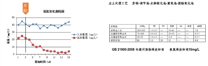 2. 快速啟動污水硝化系統,3天見效,15天內實現出水氨氮達標排放;